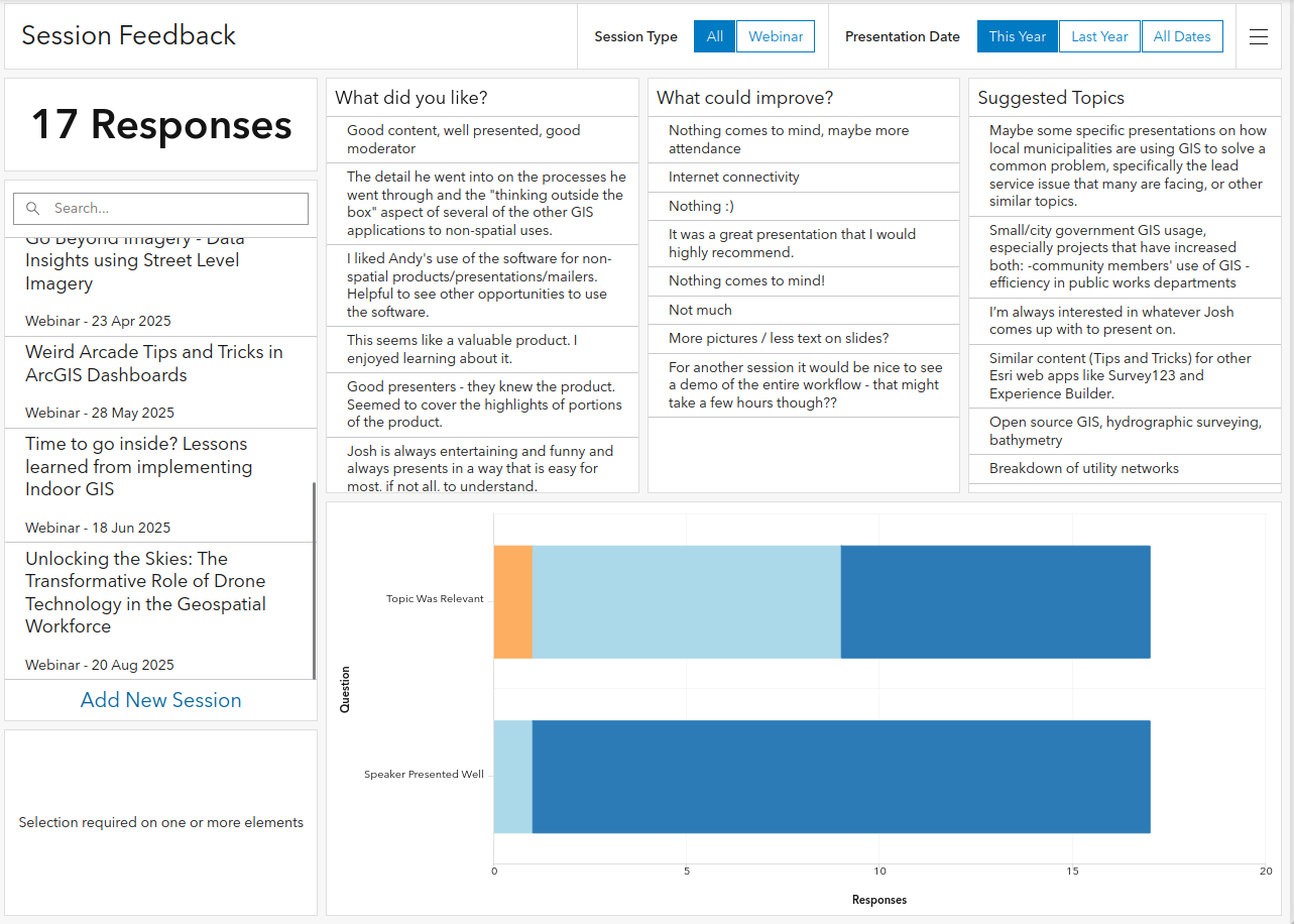 On that note, did we want to collect feedback this way, too? My session feedback dashboard is already set up, and could easily be used for in-person presentations as well.